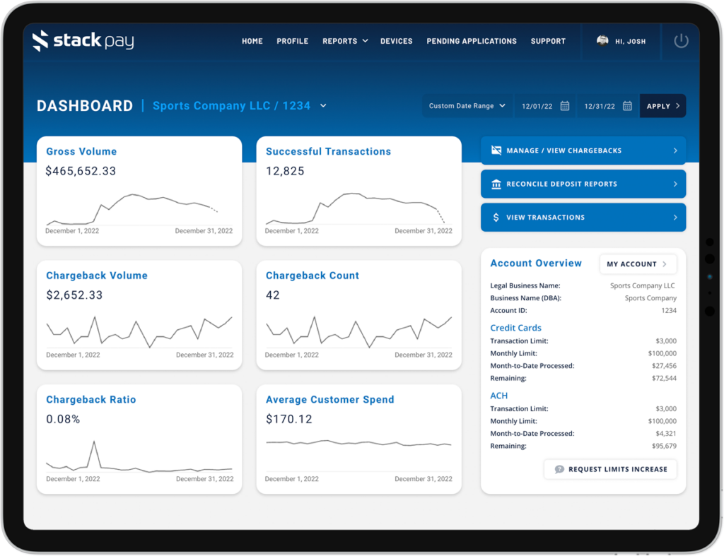 View and manage your transactions directly in your own merchant portal. Your merchant portal comes with easy to read dashboards, simplified reporting, and much more.